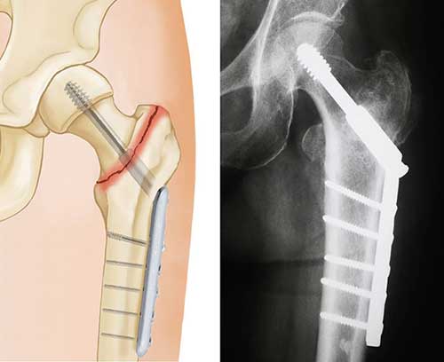 What it is: Surgery to repair a broken hip, typically through the use of metal screws, plates, or rods to stabilize the bone. In some cases, partial or total hip replacement may be necessary, depending on the location and severity of the fracture.
